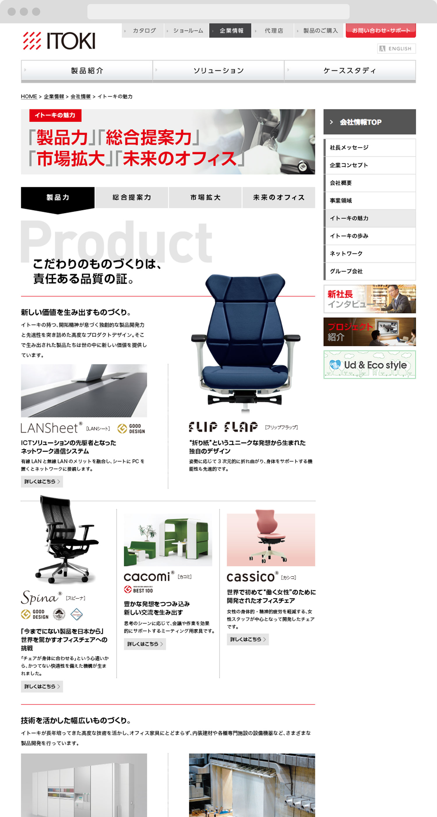 ITOKI様の会社案内2015・2016Webサイトを制作しました。-Client / ITOKIProduction / DNPDesign / Inamura Masaya