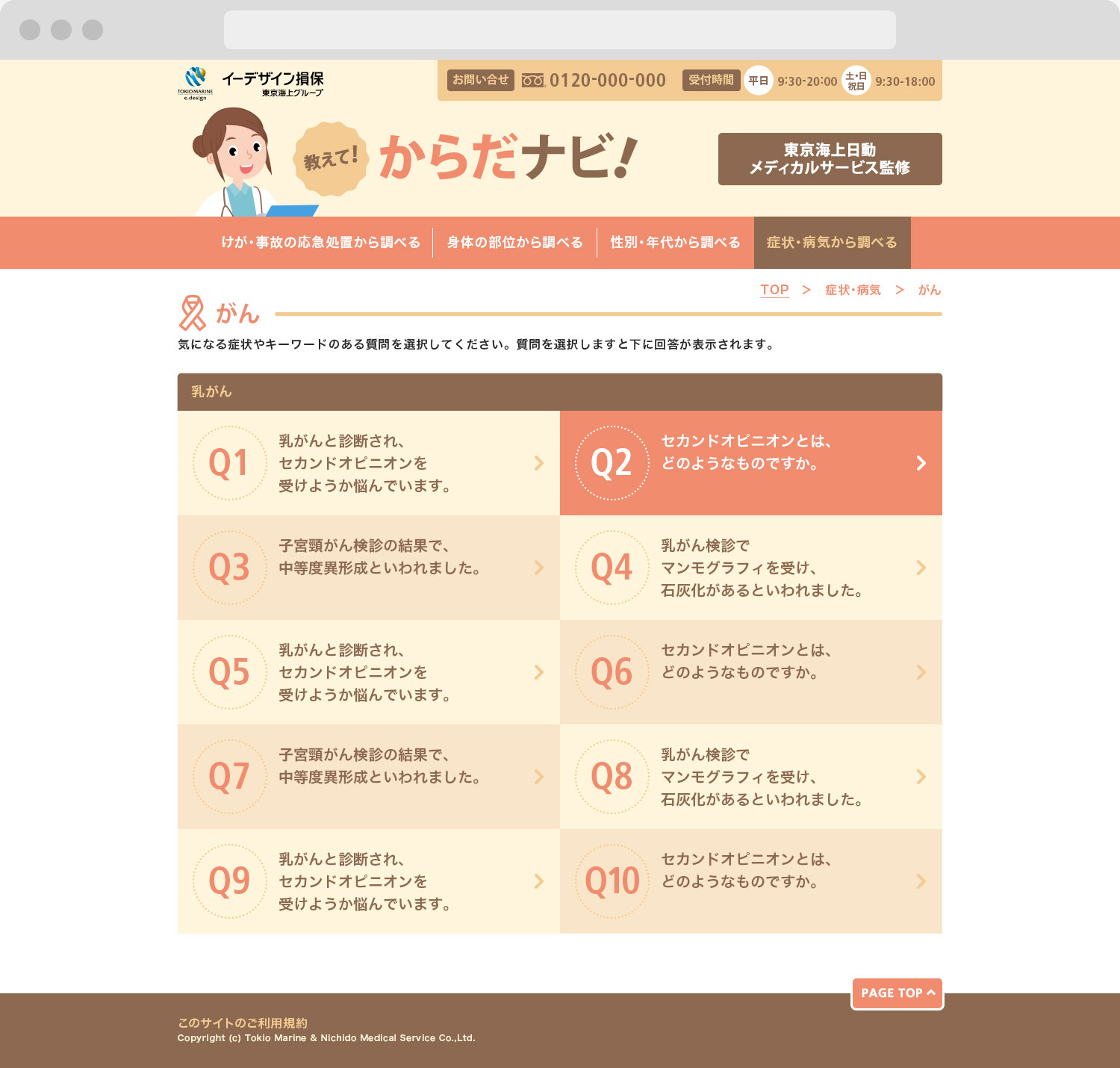 東京海上日動メディカルサービス株式会社様が運営する「教えて!からだナビ!」のWebサイトを制作しました。-Client / 東京海上日動メディカルサービス株式会社Production / DNPDesign / Inamura Masaya