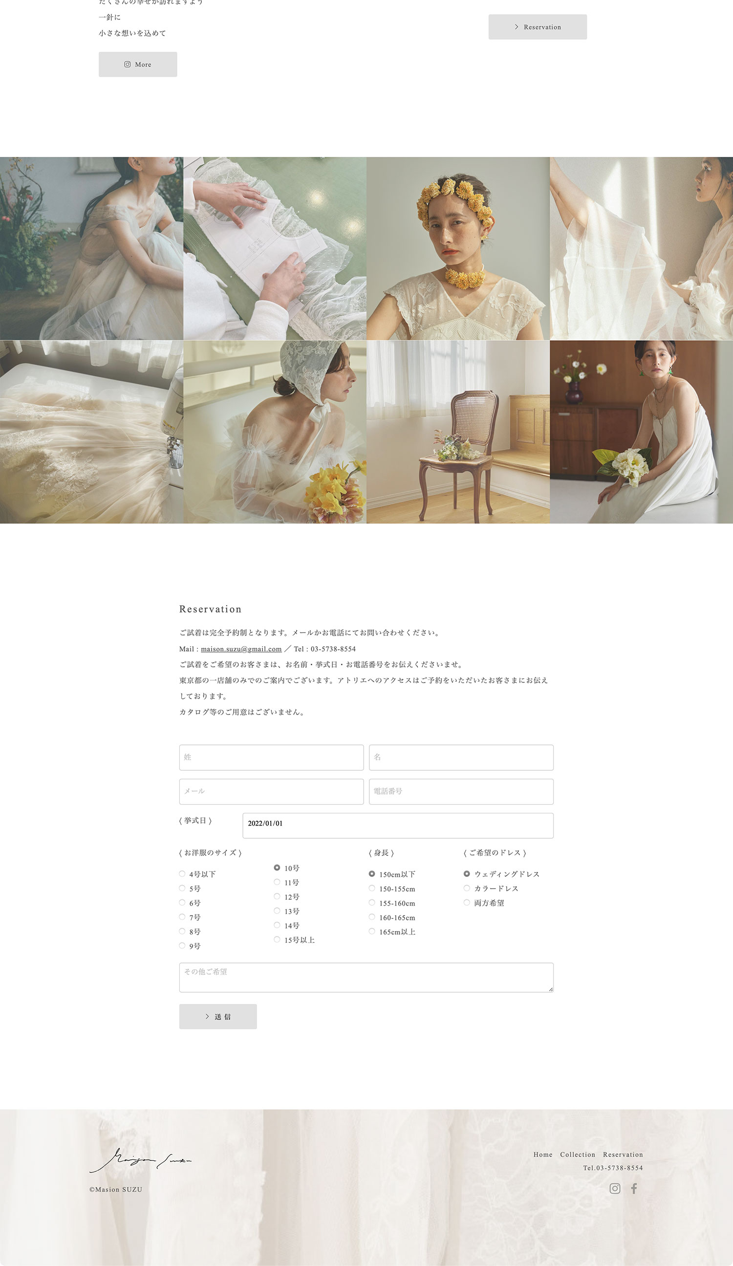繊細で美しく、ストーリーのあるドレスをデザインするMaison SUZU様のWebサイトを制作しました。-Client / Maison SUZUDesign / Inamura Masaya